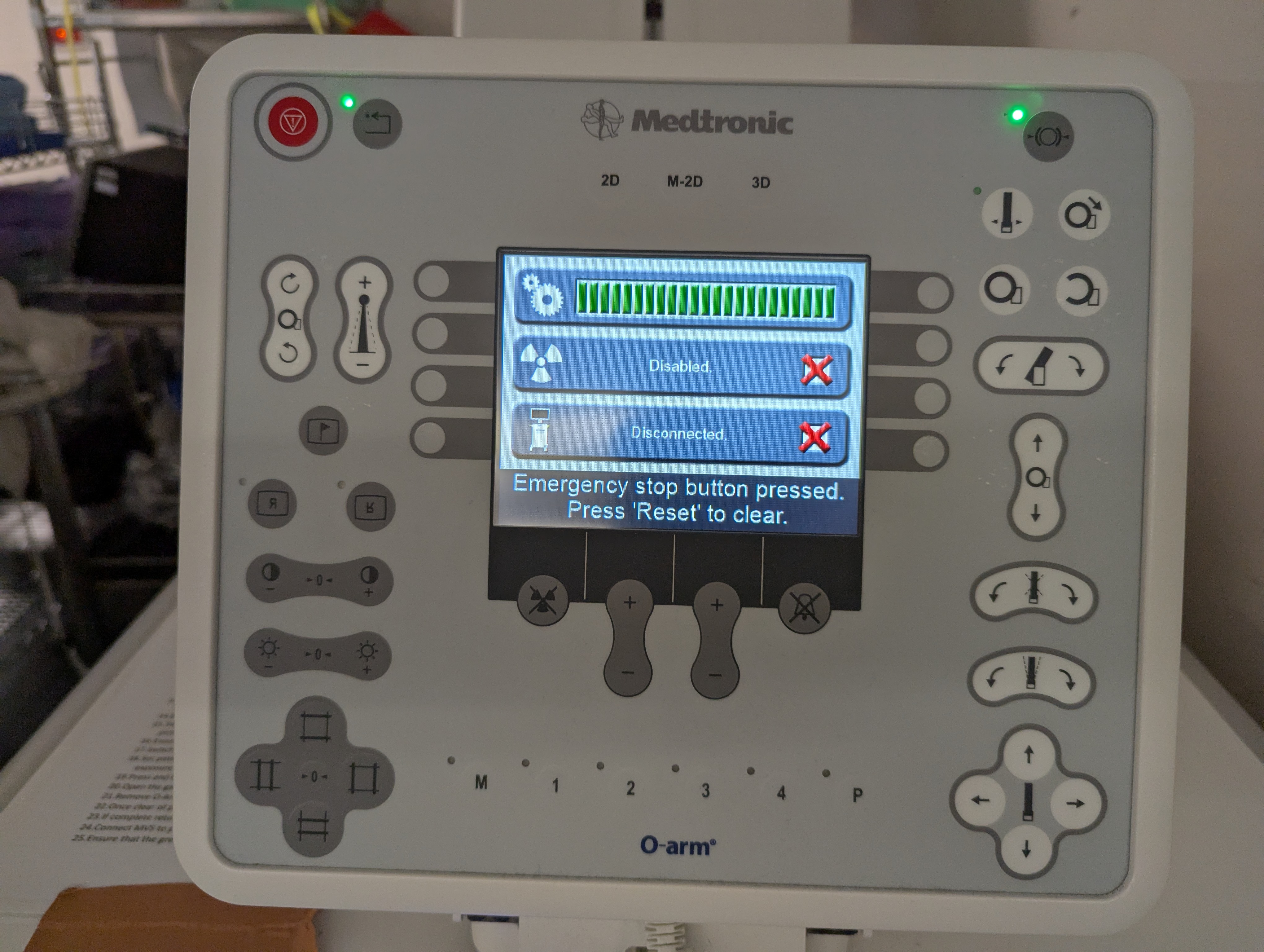 - The button on the top left of the O Arm panel will start flashing, press this button and you will hear a beep – Continue waiting for it to start up.