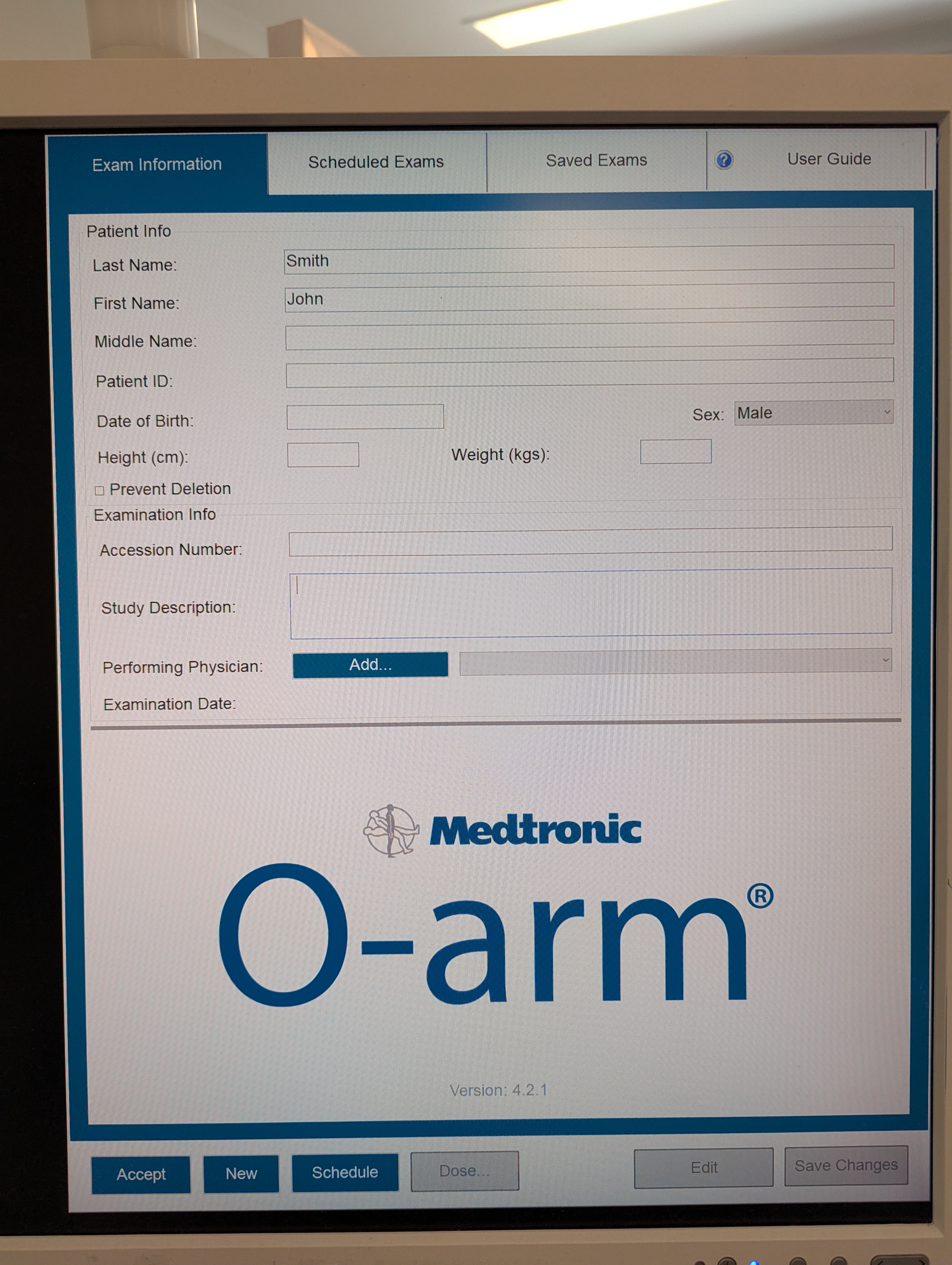 - Fully open the O Arm ring and drive over patient into surgical field.